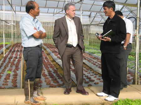 Trao đổi với chúng tôi, ông Ngô Văn Đức, chủ tịch Hội Nông dân TP Đà Lạt, tỉnh Lâm Đồng cho biết: “Những năm gần đây, nông dân Đà Lạt từng bước chuyển đổi từ phương thức sản xuất nông nghiệp truyền thống sang sản xuất ứng dụng KHKT công nghệ cao, nâng cao chất lượng cây trồng, đáp ứng yêu cầu tiêu thụ trong nước và xuất khẩu. Với diện tích đất tự nhiên là 40.000 ha, trong đó đất nông nghiệp 9.750ha, diện tích ứng dụng NNCNC như: nhà lưới, nhà kính, màng phủ nilon, sử dụng hệ thống tưới tự động là 1.350ha. Ở đây, nông dân Lê Văn Cường là một trong những gương điển hình sản xuất kinh doanh giỏi cấp Trung ương. Ông Lê Văn Cường, chủ trang trại (nay là Giám đốc Cty Đà Lạt GAP), cho biết: “Ngay từ những năm 80 của thế kỷ trước, khi hầu hết nông dân của TP rau hoa nổi tiếng này còn sử dụng phân xác mắm để bón cho cây trồng, thì tôi đã tiếp cận với công nghệ rau sạch. Năm 1997 tôi đã thành lập trại giống cây trồng và đã áp dụng công nghệ gieo hạt giống trên giá thể. Đây là công nghệ mới, mang lại hiệu quả kinh tế cao và tiện lợi trong canh tác”. Ông Cường đã chuyển giao quy trình kỹ thuật và sản xuất các loại cây giống, phục vụ nông dân trong tỉnh. Đến năm 2008, ông chính thức chuyển toàn bộ diện tích đất trồng rau của mình sang canh tác công nghệ rau sạch, mạnh dạn đầu tư nhà lưới, nhà kính, hệ thống tưới, chế độ phân bón hoàn toàn tự động. Đầu năm 2009 ông thành lập Cty TNHH Đà Lạt GAP, cũng là năm ông gặt hái được nhiều thành công, được Uỷ ban Tiêu chuẩn hóa thực phẩm quốc tế (Codex) chứng nhận sản phẩm rau sạch đạt tiêu chuẩn của hệ thống phân tích mối nguy và điểm kiểm soát tới hạn (HACCP). Tiếp đến, tháng 4/2009, sản phẩm rau của ông Cường được chứng nhận đạt chuẩn Global GAP (tiêu chuẩn châu Âu)....